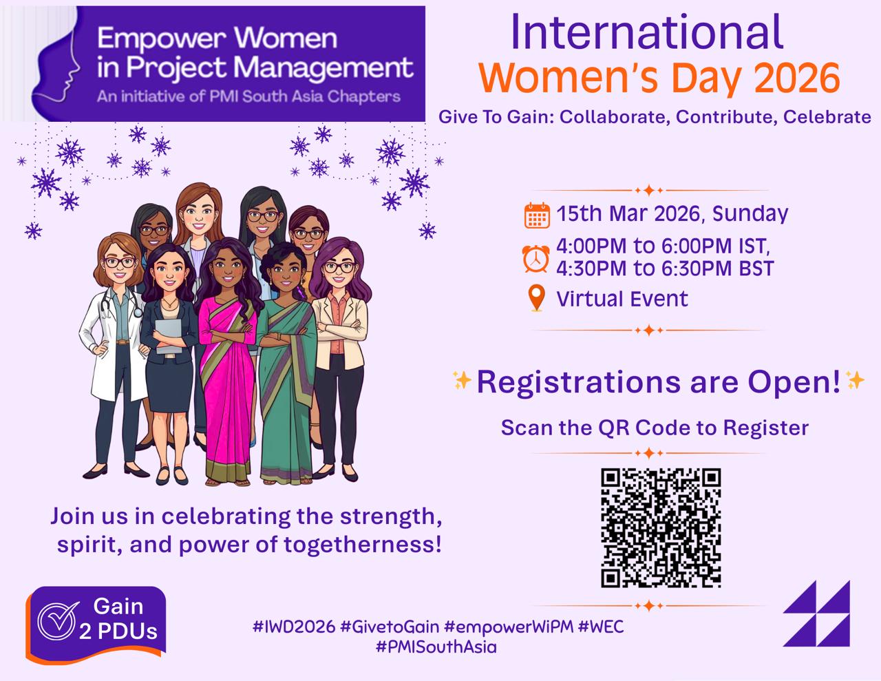 We at the Women Engagement Committee (WEC), a PMI South Asia Chapters initiative, are glad to announce that we will be hosting a celebration for International Women’s Day on March 15, 2026.